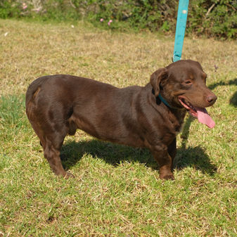 His name is Chocolate and he doesn't only have the same colour, but like the candy, this doggy is very sweet! Chocolate is friendly with people, cats and dogs. He enjoys long walks and walks well on the leash. He also loves to get cuddles.